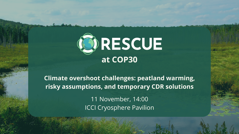 RESCUE teamed with PROVIDE and leading climate researchers from the International Institute for Applied Systems Analysis (IIASA) to bring to COP30 the hybrid session “Climate overshoot challenges: peatland warming, risky assumptions, and temporary CDR solutions” on 11 November 2025 at 14:00-15:15 in the ICCI Cryosphere Pavilion.